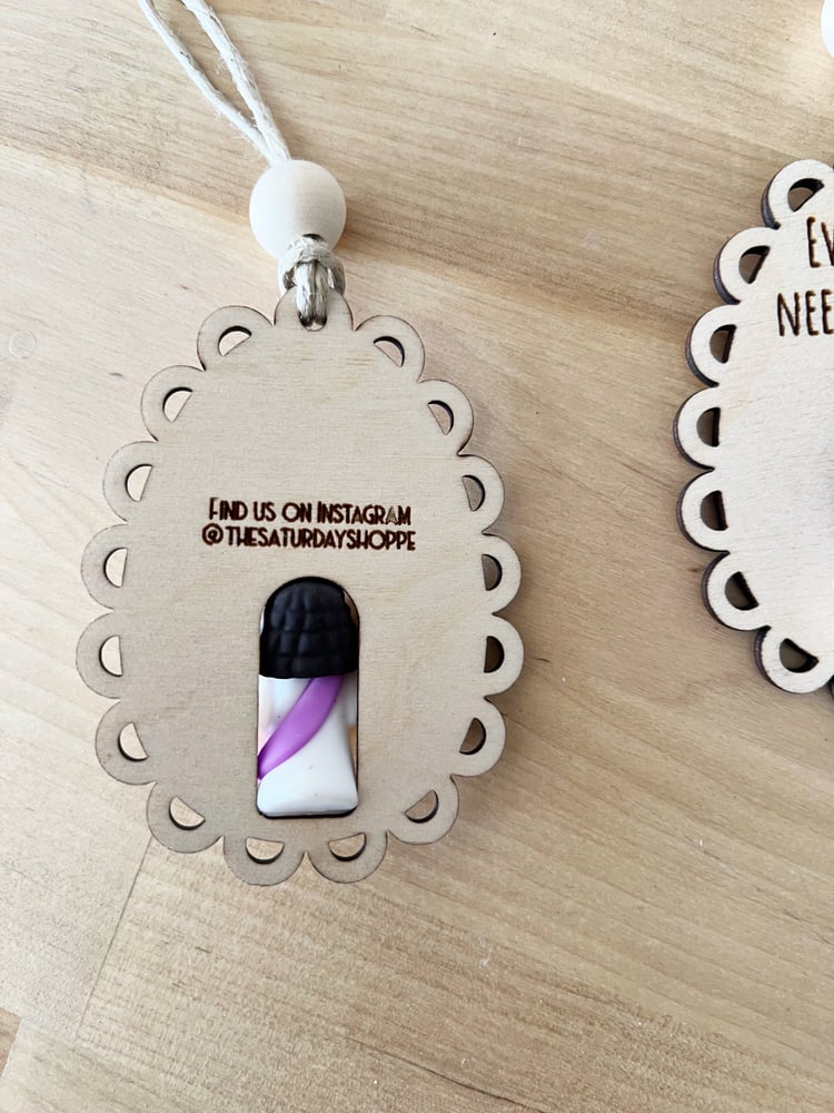 We have the cutest way to share a “little Jesus” with everyone. These are meant to hold the little Jesus until you hand it to someone, and then they take the Jesus out and put it somewhere that they would love to have it as a reminder that Jesus loves them. These come in an Easter shape, and an oval shape (which is perfect for year round). They are 1/8” thick. The Jesus easily pops out and can be popped right back in. These come as pictured, and your color of Jesus sash may vary. They are made when ordered, and you will receive an email one your order has shipped or is ready for pickup. It’s about a 3 day turnaround. To pickup in South Gilbert, use code LOCALSATURDAY at checkout.